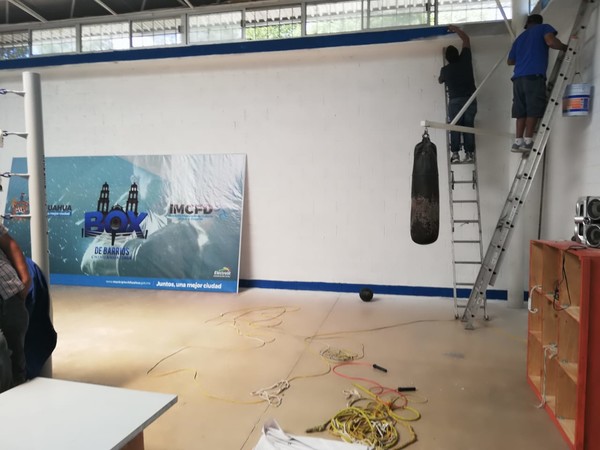 En el marco de los encuentros del Torneo de Box de Barrios que organiza el Gobierno Municipal a través del Instituto de Cultura Física y Deporte (IMCFD), la comitiva del departamento de deporte popular se encuentra en trabajos de mantenimiento y rehabilitación en gimnasios sedes.