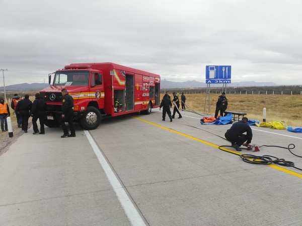 Como resultado de la volcadura, una de las válvulas del vehículo empezó a liberar el material químico, que transportaba dese el centro del país hacia ciudad Juárez, pero gracias a la intervención de 17 elementos bomberos, 10 de ellos del grupo Haz Mat especializados en el manejo de materiales químicos peligrosos y agentes de la Coordinación Estatal de Protección Civil, controlaron de inmediato la situación y evitaron que los miles de litros provocaran un daño irreversible al medio ambiente.