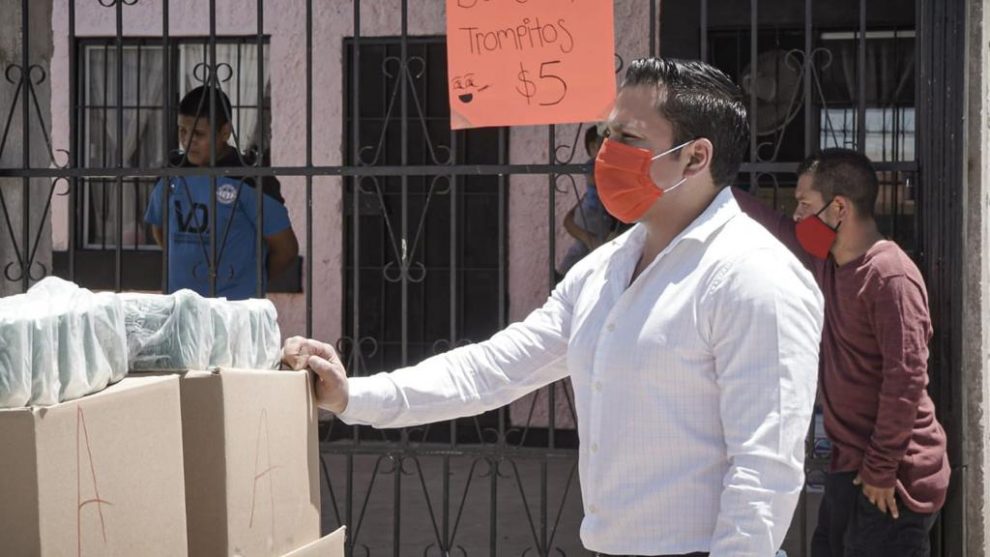 El alcalde, Ariel Fernández, y el delegado regional el Bienestar, Marcelino Gómez, llevaron paquetes con alimentos a varias de las casas de los vecinos de los fraccionamientos, en donde sostuvieron un diálogo con los habitantes para escuchar sus inquietudes.