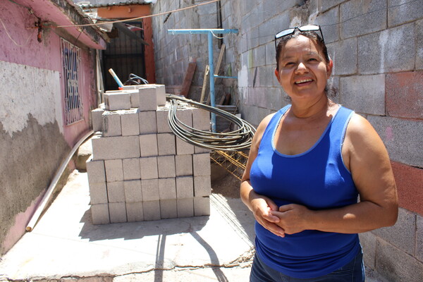 La señora María Estela Solís, beneficiaria de este apoyo, es madre de cuatro hijos, actualmente vive con dos de ellos; una de 19, y otro de 12 años, además de su nieta de 2 años; siendo ella el sostén de la familia, de poco a poco ha adaptado su hogar, pero no había podido extender la construcción de su casa, por los