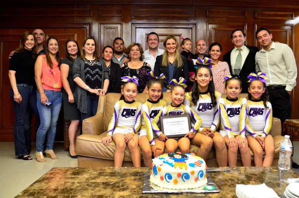 En el despacho de la Presidencia Municipal, la alcaldesa Maru Campos Galván, así como el titular del Instituto Municipal de Cultura Física y Deporte, Orlando Villalobos Seáñez, recibieron al equipo infantil de porristas que participó en el Campeonato Internacional de esta disciplina efectuado en la ciudad de Orlando, Florida, en el cual el contingente chihuahuense obtuvo el 12vo lugar.