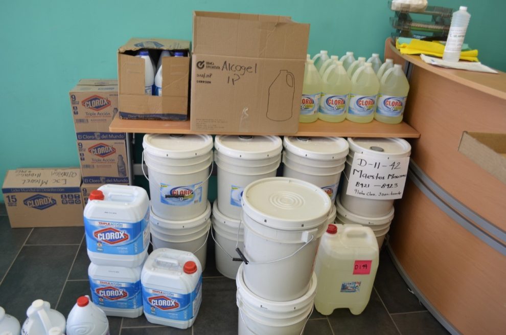 En total se recibieron 109 batas blancas, 864 cubrebocas, 43 litros de gel antibacterial, 5 oxímetros, 4 termómetros, 400 piezas de guantes de látex, 250 litros de cloro, 42 litros de alcohol, 69 litros de sanitizante, 1 mil 240 bolsas negras, 144 botellas de agua y 70 máscaras.