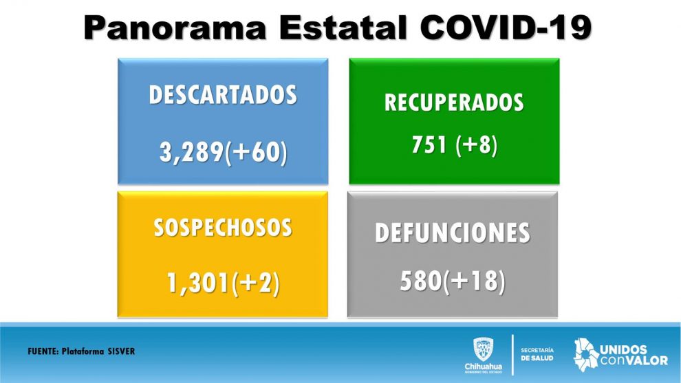 El total de fallecidos aumentó a 580 con 18 nuevos casos y a 4 mil 036 los confirmados, ya que se agregaron 63 registros, 43 de las últimas 24 horas y 20 extemporáneos.