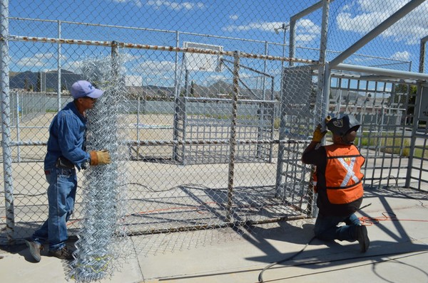 Gracias a una donación recibida por parte de un club deportivo, personal de la Subdirección de Espacios Públicos reparó la malla ciclónica de las dos canchas de futbol.