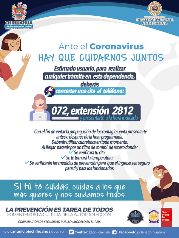 Según informó el Coordinador, debido a la pandemia por COVID-19, al igual que en las demás dependencias municipales se implementaron varias medidas sanitarias en las instalaciones, con el fin de prevenir contagios, entre ellas agendar las citas vía telefónica ya que de esta manera las personas no tendrán que esperar ni aglomerarse al momento de acudir a realizar determinada gestión.