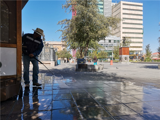Además, en la zona de la Plaza de Armas, de forma diaria durante las mañanas, se sanitiza y limpia el área con una hidrolavadora cargada con sanitizante y agua.