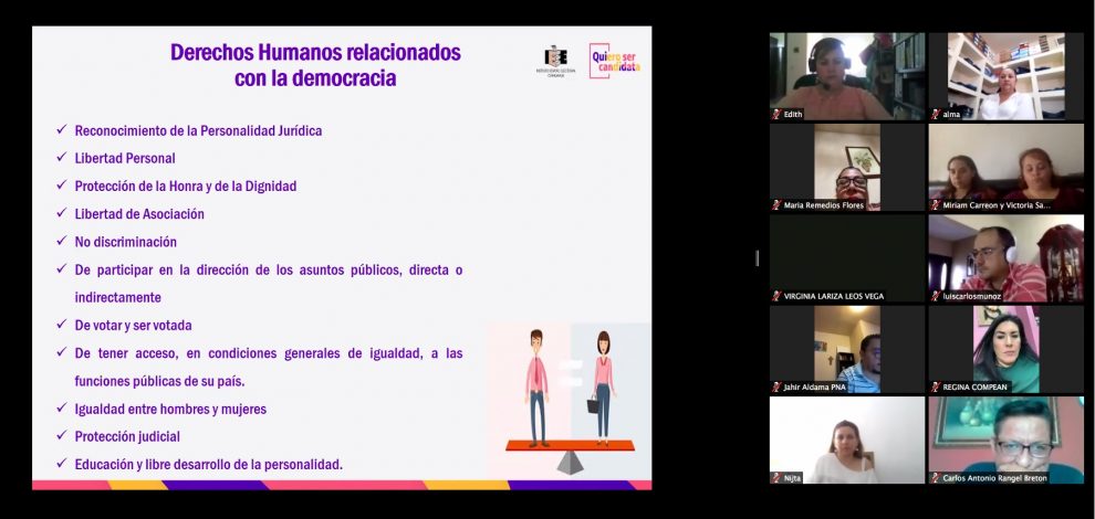 La capacitación constó de cinco módulos que abarcaron la temática amplia: los derechos humanos y su relación con la democracia y las elecciones, el registro de candidaturas, la violencia y los medios de