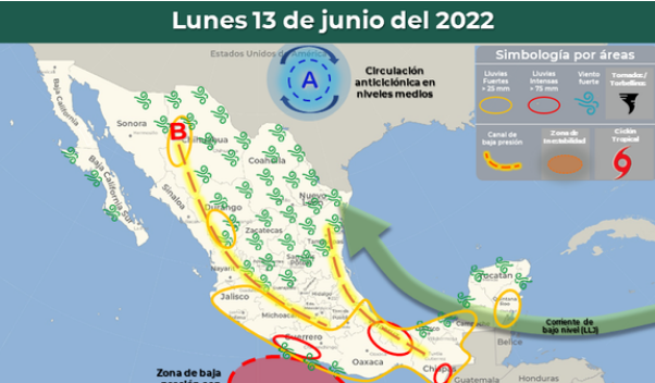 Mientras para el miércoles 15, el pronóstico del tiempo indica que, la presencia de lluvias mantendrá el termómetro dentro de los 35 y 39 grados en la mayor parte del territorio estatal.