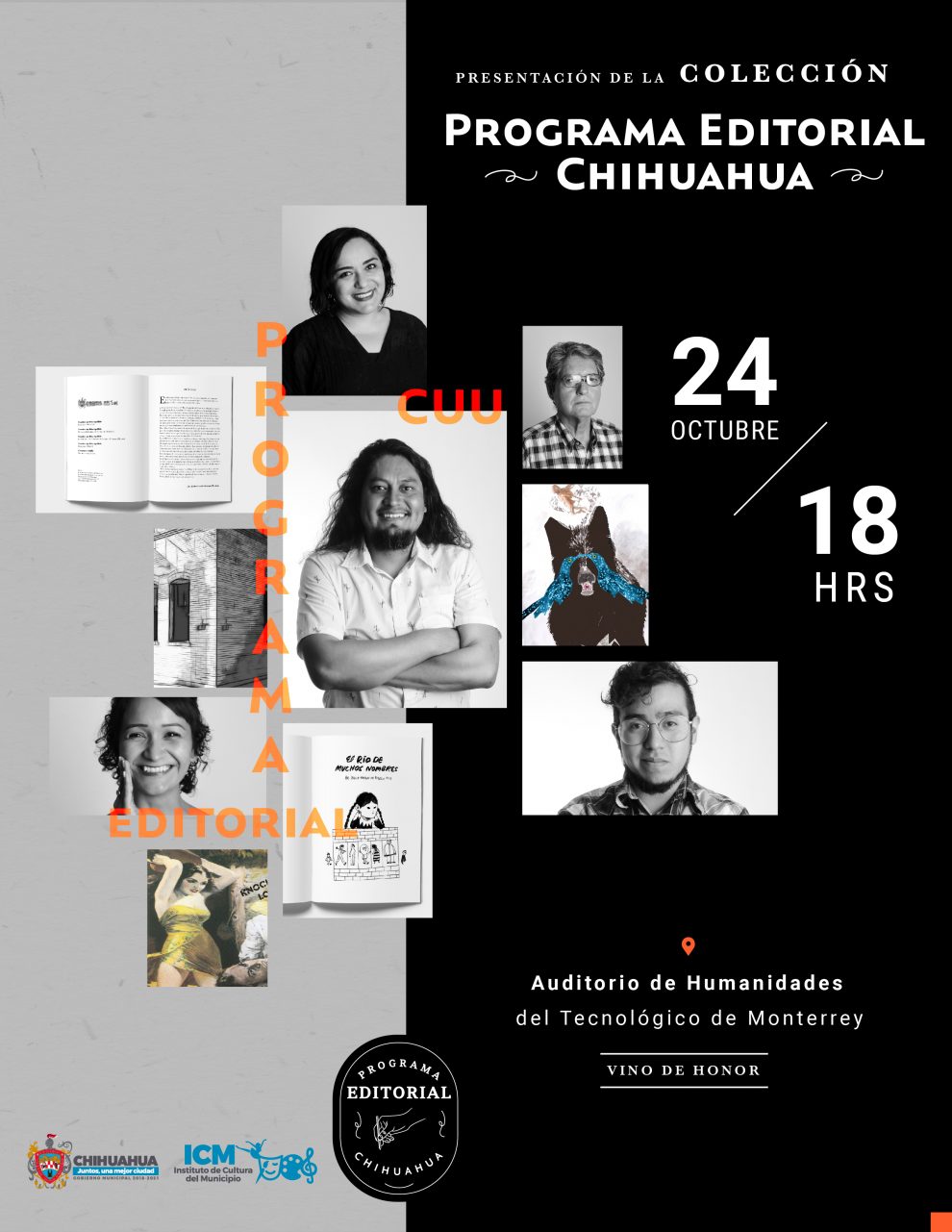 El Gobierno Municipal a través del Instituto de Cultura del Municipio invita este próximo miércoles 24 de octubre a la presentación de la colección del Programa Editorial Chihuahua que se llevará a cabo en el Auditorio de Humanidades del Tecnológico de Monterrey en punto de las 6 de la tarde.