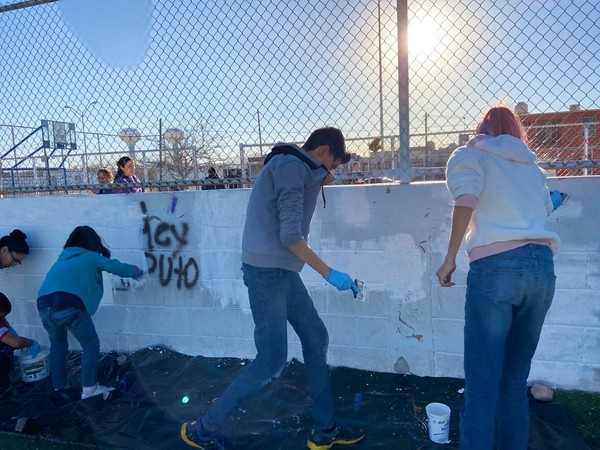 Luego de que la cancha fuera vandalizada con grafitis, los vecinos del sector se contactaron con la Dirección de