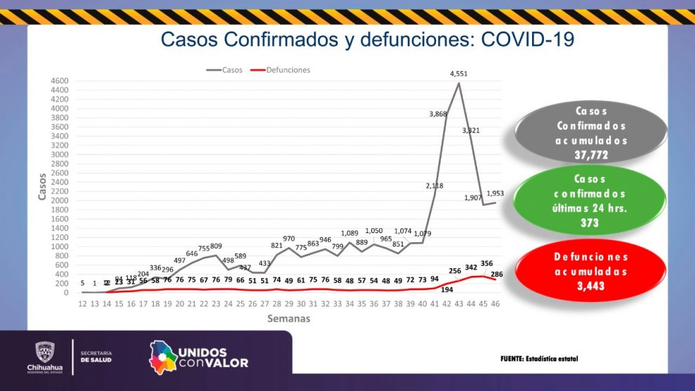 Con 373 nuevos casos confirmados de COVID-19 en el lapso de las últimas 24 horas, el estado de Chihuahua llegó a 37 mil 772 contagios, dio a conocer Arturo Valenzuela Zorrilla, director médico de la Secretaría de Salud en la zona norte.