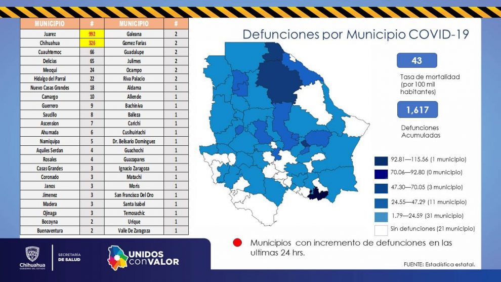 La doctora Leticia Ruiz González, directora de Prevención y Control de Enfermedades reportó que en las últimas 24 horas se registraron 380 nuevos casos y fallecieron 11 personas: seis en Chihuahua y cinco en Ciudad Juárez.