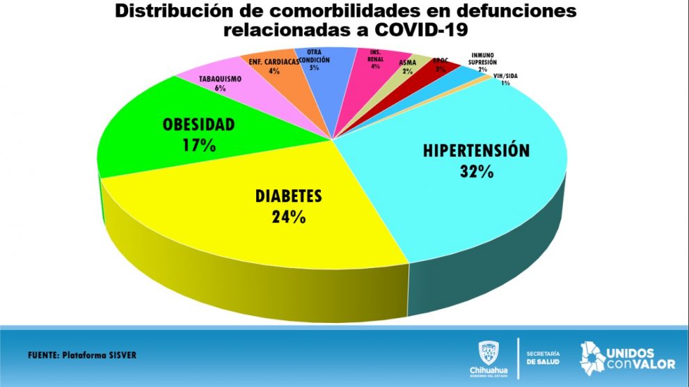 El número de personas fallecidas es 835, que corresponden a 621 decesos en Ciudad Juárez, 121 a la ciudad de Chihuahua, 9 a Cuauhtémoc, 2 a Guadalupe D. B., 5 a Ascensión, 3 en Camargo, 2 Rosales, 1 Bachíniva, 13 en Meoqui, 1 Buenaventura, 21 Delicias, 1 Ignacio Zaragoza, 1 San Francisco del Oro, 7 Parral, 1 Madera,1 Coronado, 6 Nuevo Casas Grandes, 1 Ojinaga, 1 Valle de Zaragoza, 1 Bocoyna, 3 Saucillo, 1 Morís, 1 Gómez Farías, 1 Jiménez, 1 Urique, 1 Casas Grandes, 1 Allende, 1 Janos, 2 Galeana y 1 Ocampo. Recordemos que se agregan al municipio de residencia del paciente.