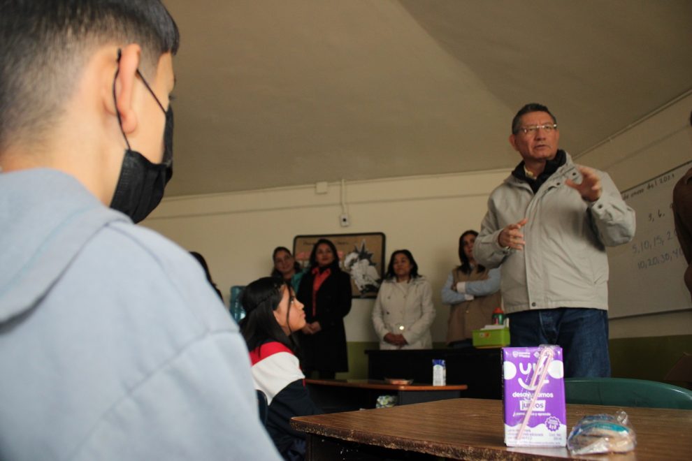 Las autoridades efectuaron un recorrido por cada uno de los salones de la institución para entregar los respectivos desayunos, mismos que incluyen un envase tetra brick de leche de 250 mililitros, fruta deshidratada (manzana, arándano y cacahuate) y una barra de manzana, avena y cacahuate o galletas de diferentes sabores.