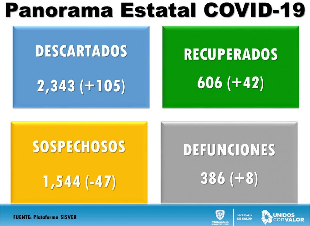 A través del Reporte COVID-19 Conferencia Informativa #114 – Virtual #70, se dio a conocer que a la fecha suman 606 recuperados (42 nuevos), disminuyeron en 47 los casos sospechosos (1,544 en total) y se descartaron 105 casos para llegar a 2 mil 343.