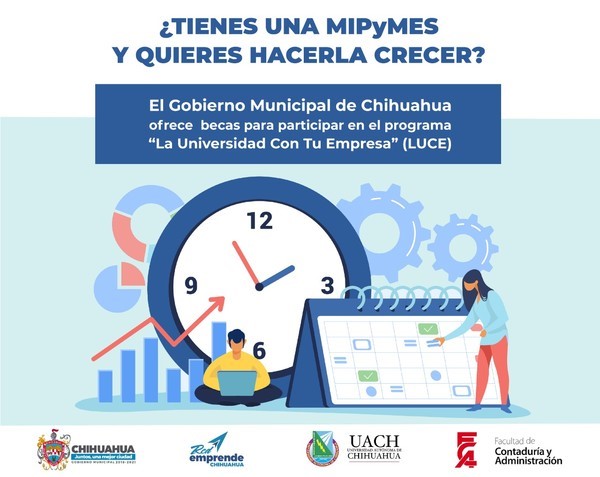Como parte del compromiso de generar las condiciones adecuadas para fortalecer la economía local, el Gobierno Municipal de Chihuahua y la Universidad Autónoma de Chihuahua ofrecen becas a micro, pequeños y medianos empresarios para formar parte del programa “La Universidad con tu empresa” (LUCE). La convocatoria cierra el próximo 09 de marzo.