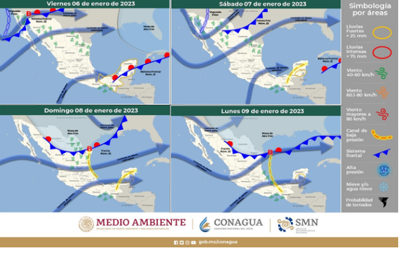 Mientras que para este sábado 7 y domingo 8 de enero, el Frente Frío número 22 recorrerá el territorio estatal y provocará temperaturas de gélidas a muy frías en la zona serrana con presencia de heladas durante las mañanas.