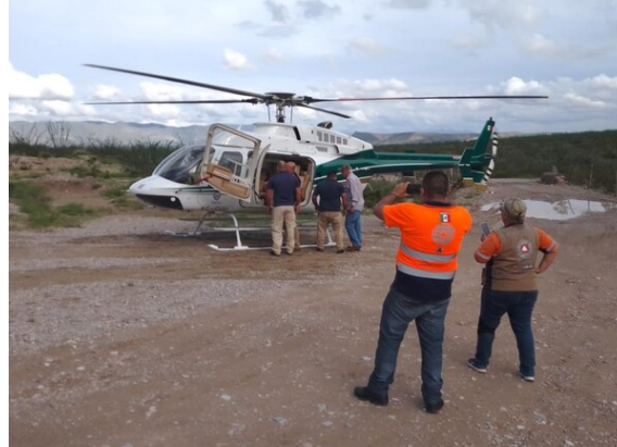 helicóptero Bell 407 piloteado por el Capitán Julio Berlanga de Gobierno del Estado, toda vez que el camino se tornó de difícil acceso para vehículos todo terreno.